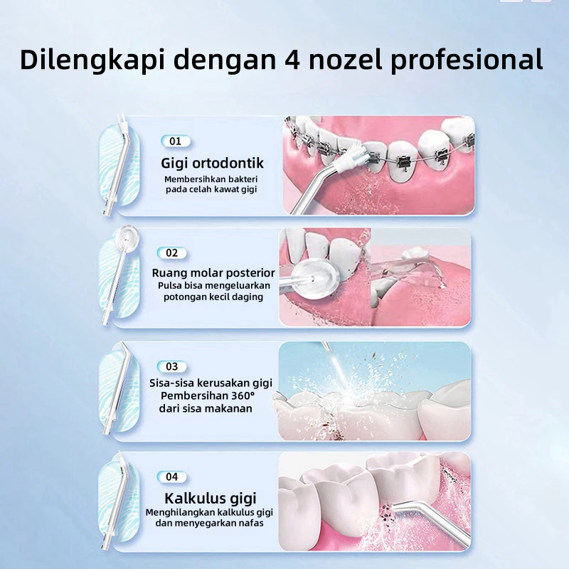 TERLARIS 4 IN 1 ELECTRIC ORAL LRRIGATOR WATER FLOSSER (3 MODE + 4 NOZEL) PORTABLEPEMBERSIH GIGI LISTRIK PENGHAPUS