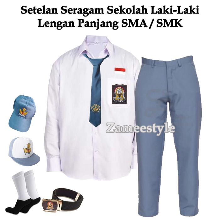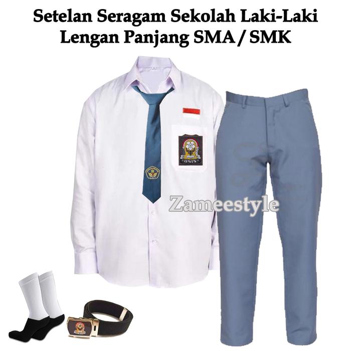 TERLARIS PAKET LENGKAP SETELAN SERAGAM ANAK SEKOLAH SMASMK ABU PUTIH LAKILAKI LENGAN PANJANGHANYA BAJU+CELANA