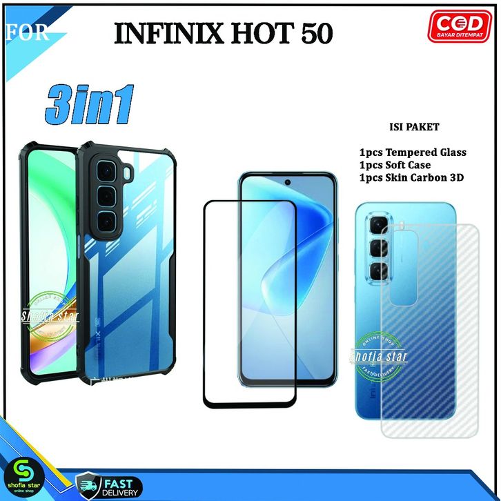 (TERLARIS)Paket 3in1 Case Infinix Hot 50 Pro 4G Hot 50 4G 5G 50i Softcase Fusion Shockproof Transparan Casing