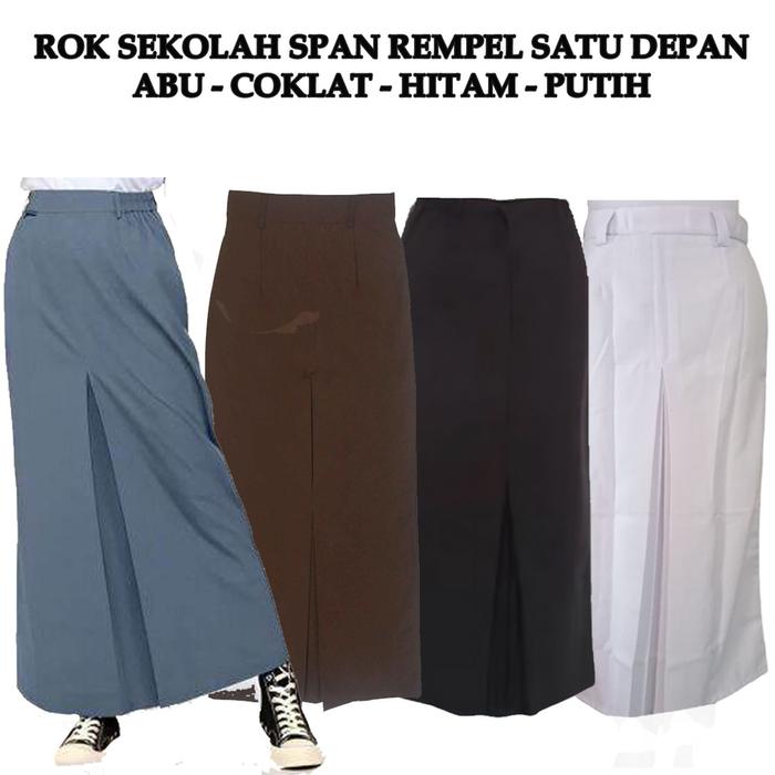 TERLARIS ROK PANJANG SPAN REMPEL SATUBELAH DEPAN WARNA ABUCOKLATHITAMPUTIHBIRU SERAGAM SEKOLAHSPAN