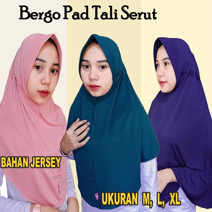 TERLARIS BERGO PAD TALI SERUT KERUDUNG INSTAN BAHAN JERSEY UKURAN M L XLSTONE, XL