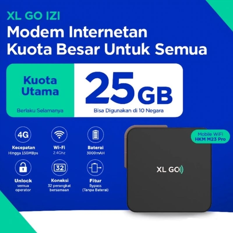 XL GO MiFi HKM M23 Pro Modem WiFi 4G LTE Free Data 25GB XLGO 3000mAh Unlock & Bypass