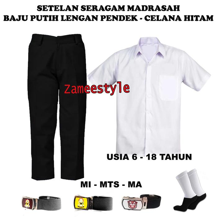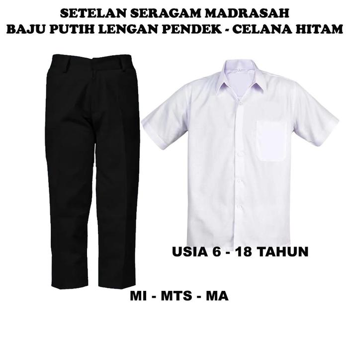 TERLARIS SETELAN SERAGAM SEKOLAH MADRASAH MIMTSMA BAJU PUTIH LENGAN PENDEK DAN CELANA PANJANG HITAM USIA 618 TA