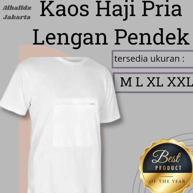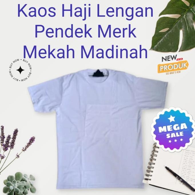 DP 0 KAOS HAJI DAN UMROH PRIA LENGAN PENDEK DENGAN KANTONG BAHAN ADEM PUTIH M