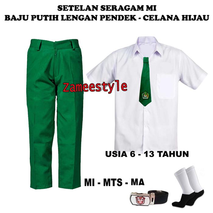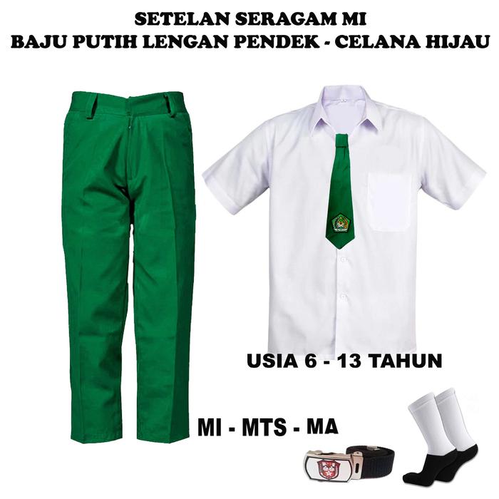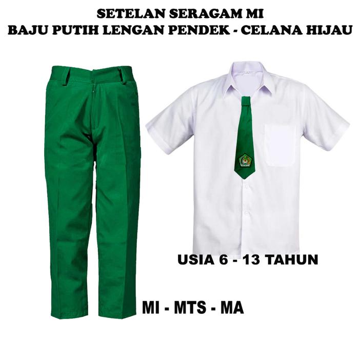 TERLARIS SETELAN SERAGAM SEKOLAH MI LAKILAKI BAJU PUTIH LENGAN PENDEK DAN CELANA PANJANG HIJAU USIA 613 TAHUN