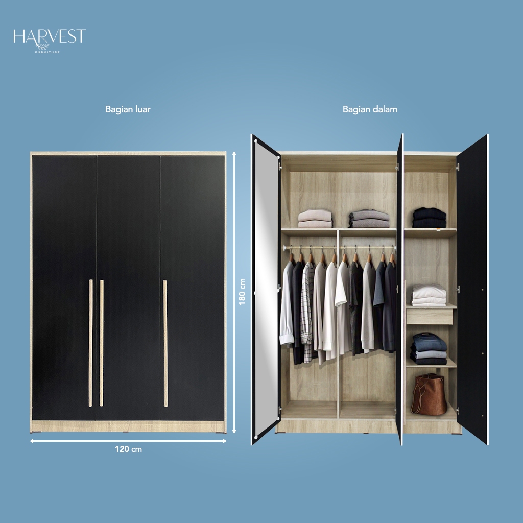 Harvest Furniture Lemari Baju Pakaian 3 Pintu TERMURAH