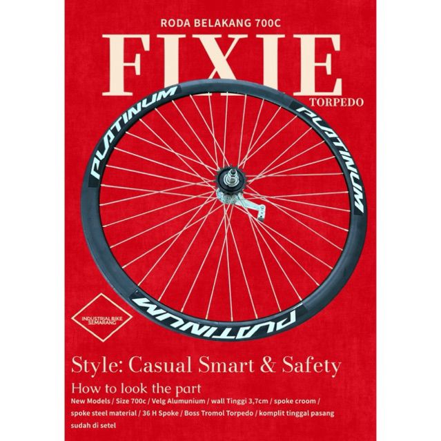 Promo SIAP PAKAI 700C / PLATINUM / TORPEDO Wheelset Roda Fixie 700c Fixed Gear Wheel Set Alloy Aluminium Platinum Rod