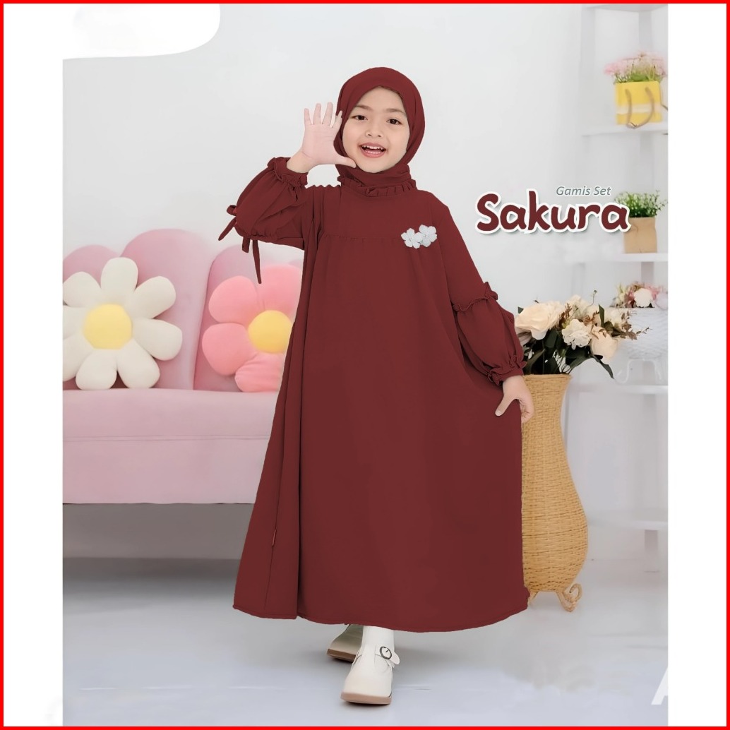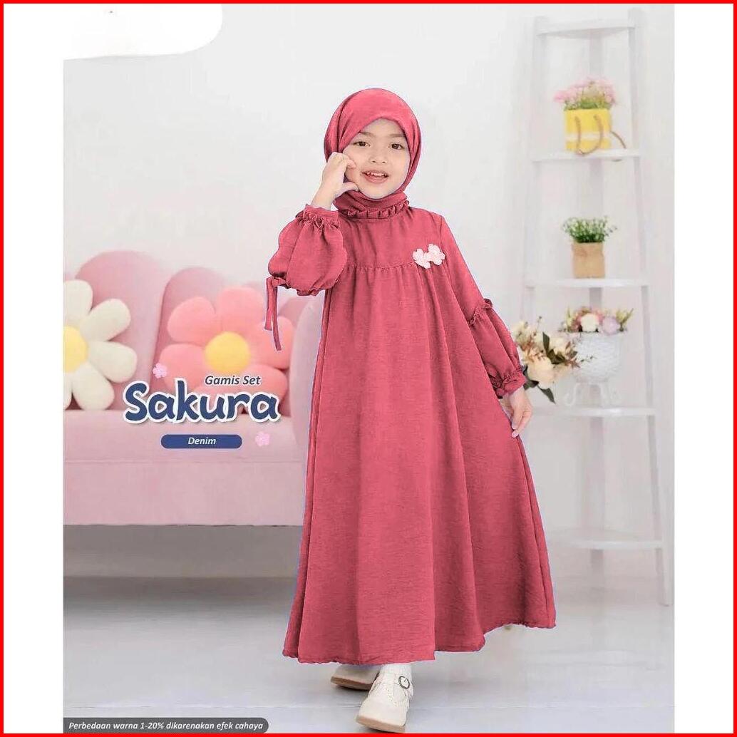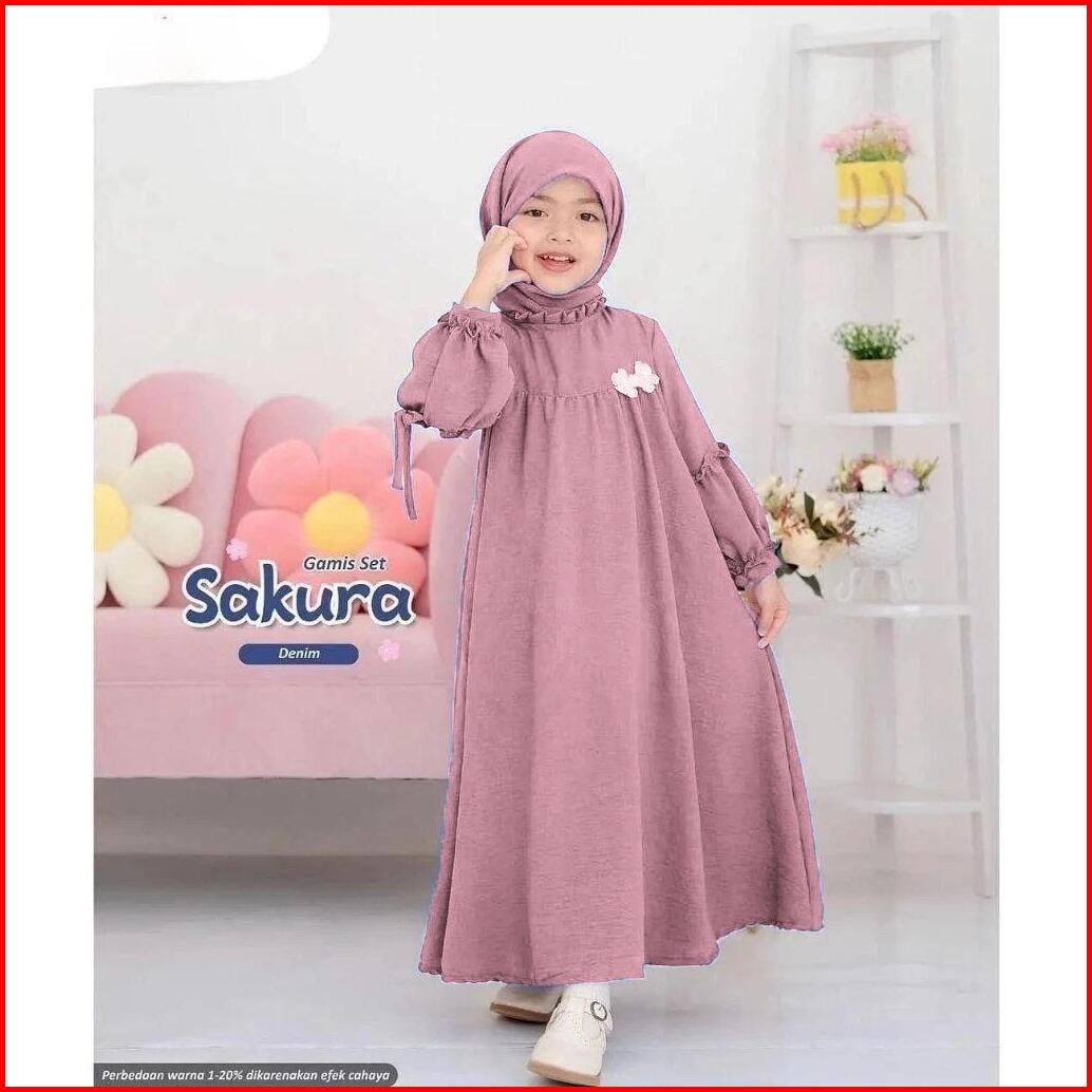 Gamis Sakura Baju Gamis Anak Perempuan Baju Muslim Anak Perempuan 2-12 Tahun