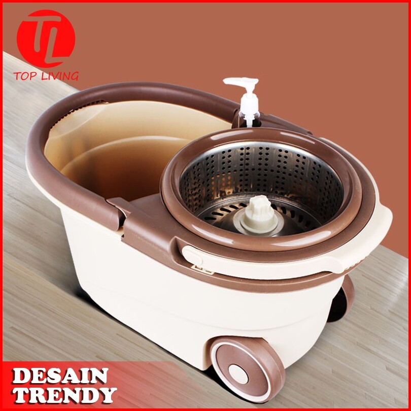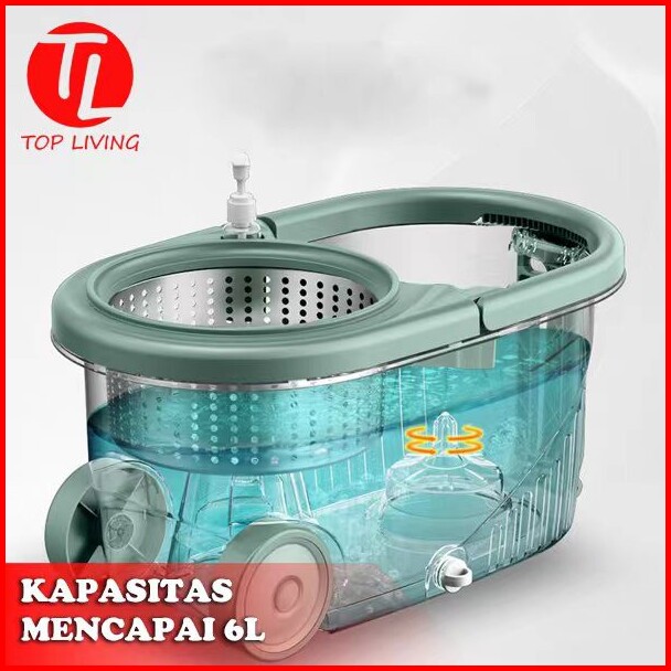 Top Living Spin Mop Alat Pel Lantai Praktis Ultra Mop Otomatis Kering Basah Kain Lap Pel Lantai Bers