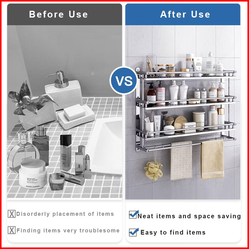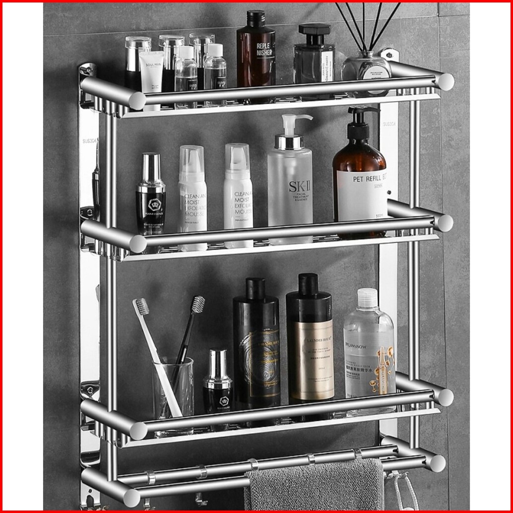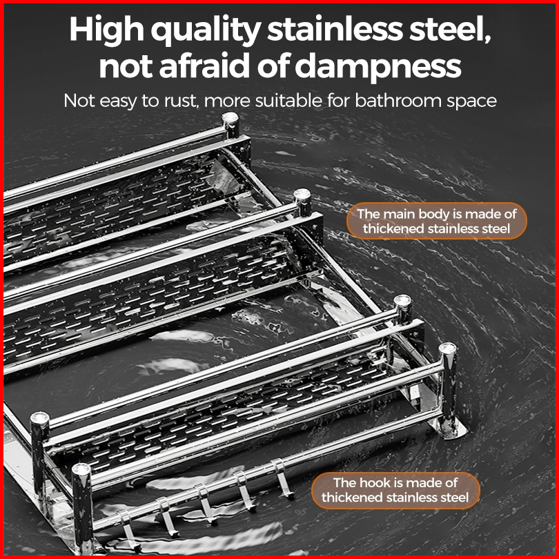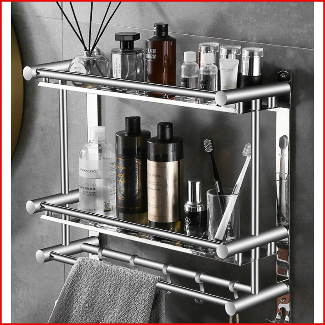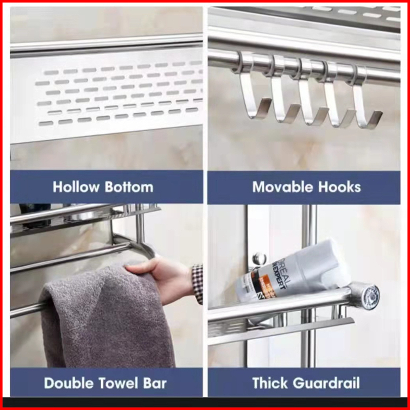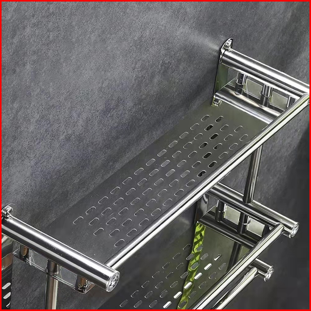 Sus 304 Kamar Mandi Rak Handuk Gantungan Dinding Stainless Steel 2 Tingkat Rak Handuk Rak Serbaguna