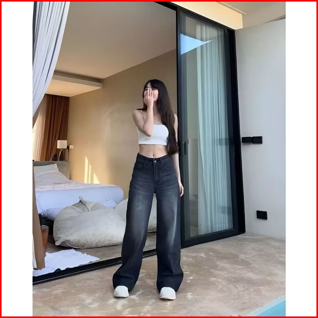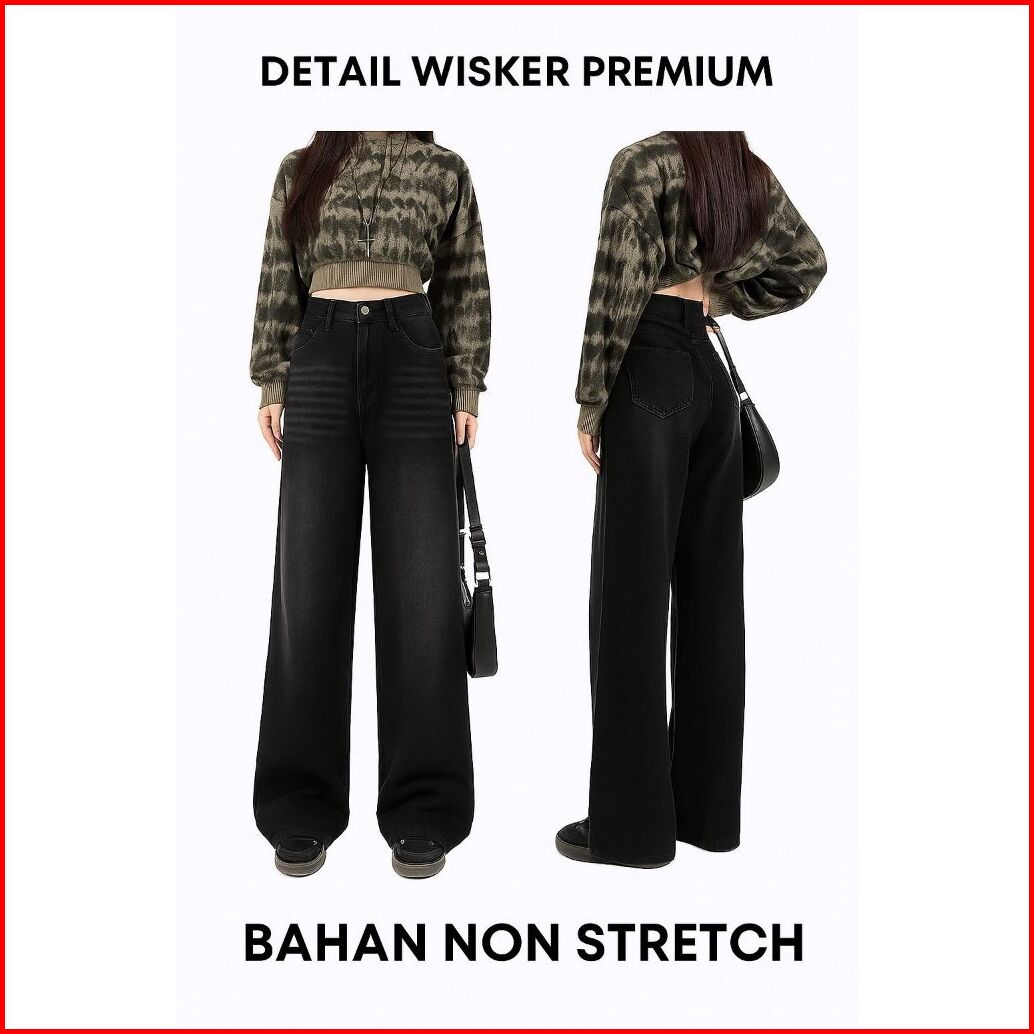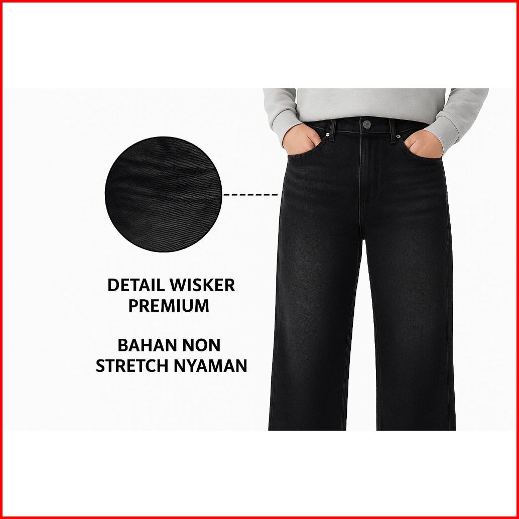 Unisex Celana Jeans Gombrong Pria Wanita - Oversize Wide Leg High Waist Denim Hitam Biru