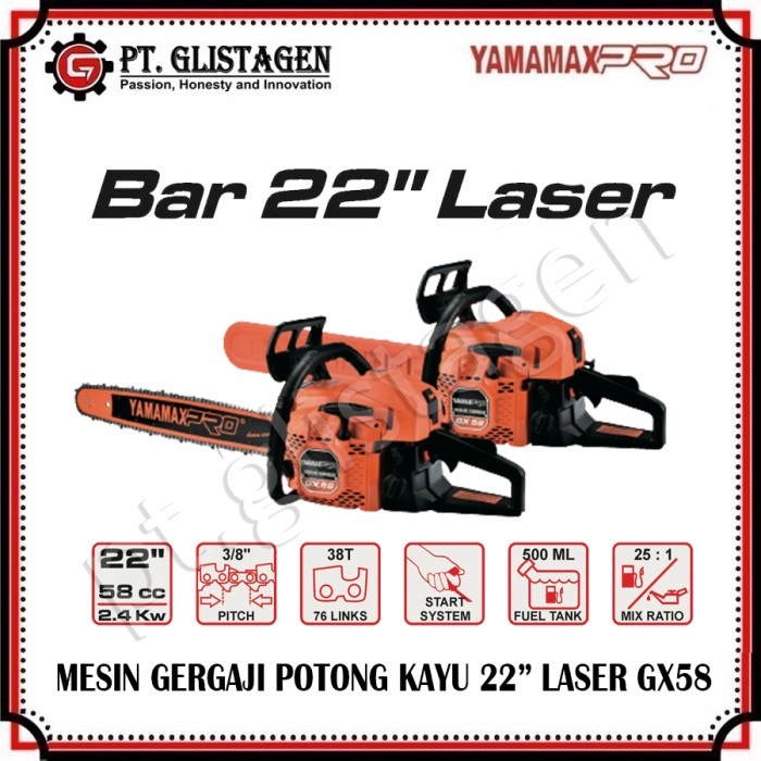 Mesin Gergaji Chainsaw 22" Potong Pohon Chain Saw Yamamax GX58 Laser