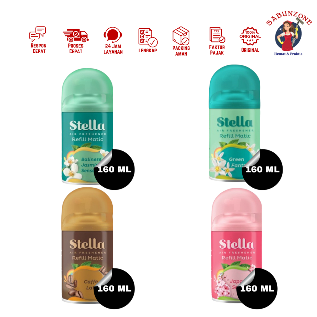 Pengharum Ruangan Otomatis Stella Matic Refil Balinese Jasmine Sensation / Green Fantasy / Caffe Latte / Japanese Sakura 160 ml