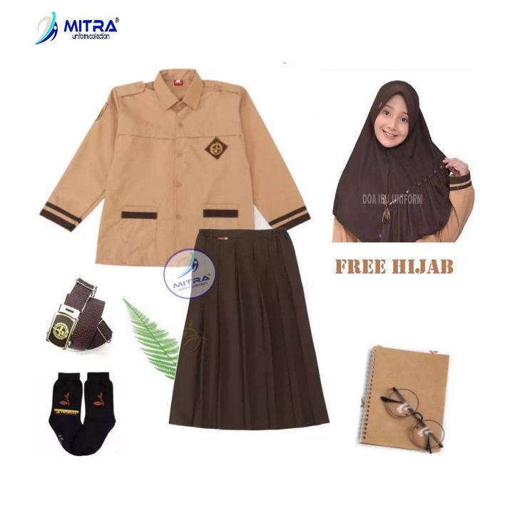 Seragam Pramuka Siaga SD Panjang Setelan Anak Perempuan Kelas 1-6 SD Free Hijab Coklat Perempuan