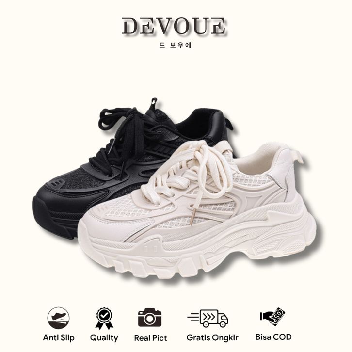 DEVOUE - #37 Sepatu Sekolah Wanita Sepatu Sneakers Hitam Semi Formal Sepatu Casual Cewek Tinggi CM