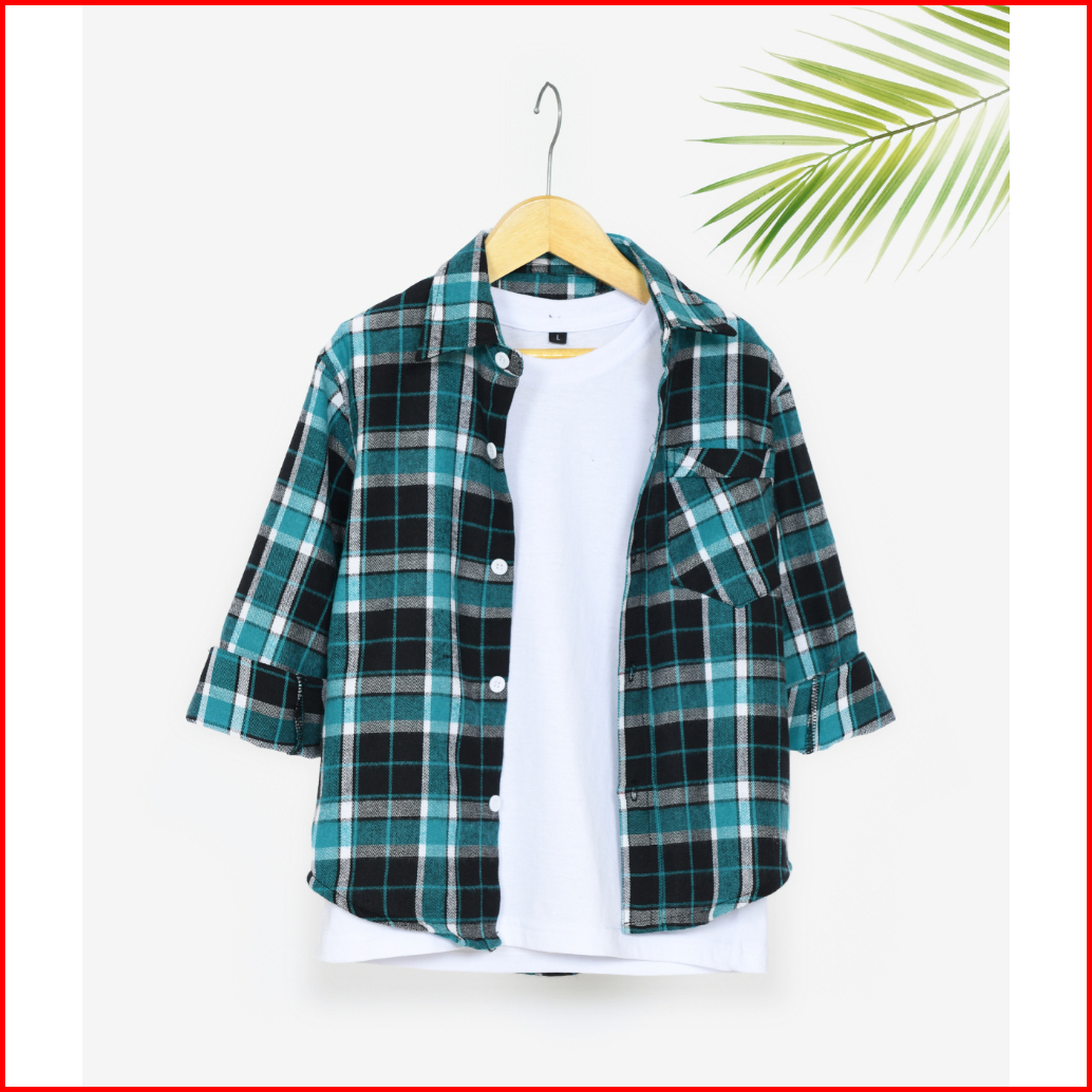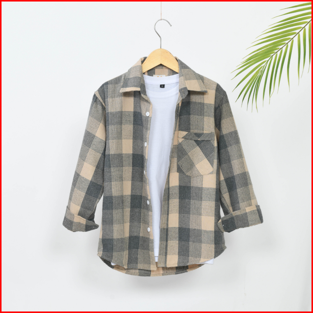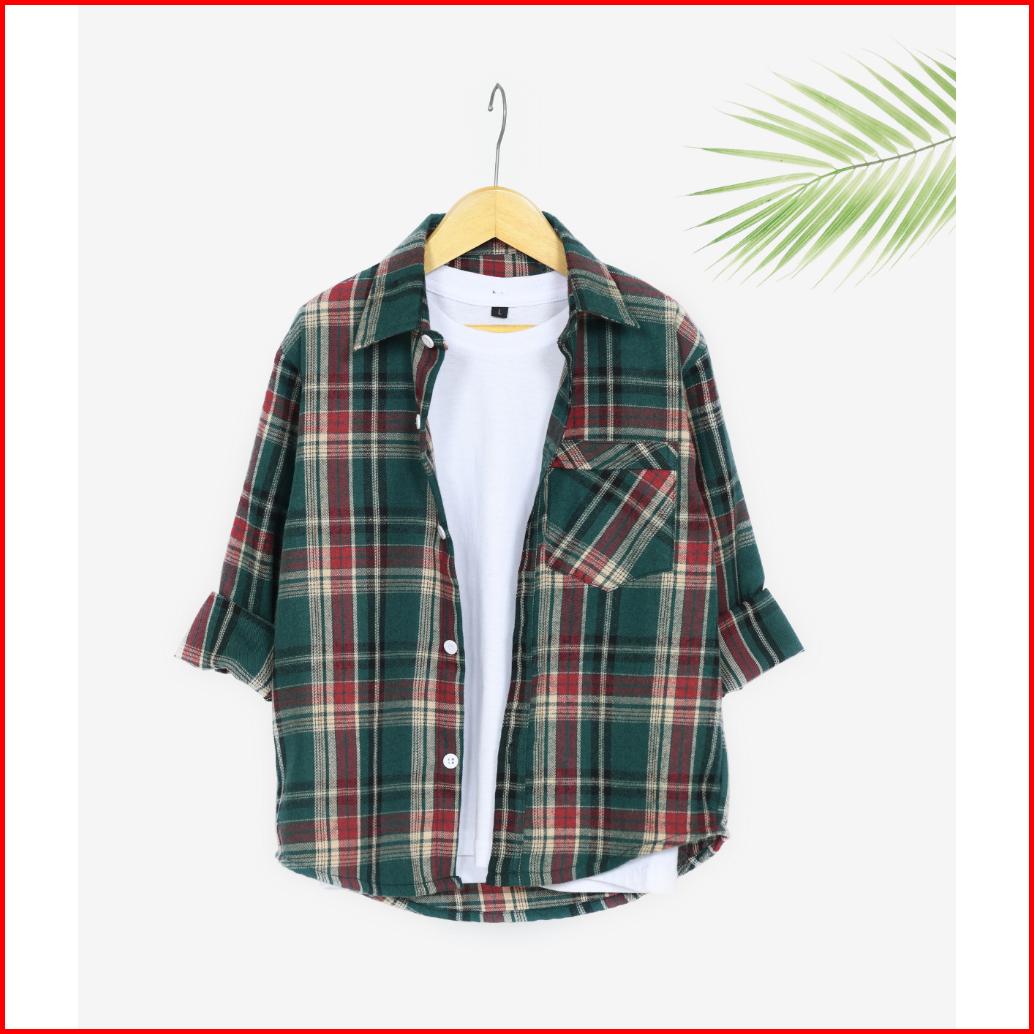 Baju Anak Laki Laki Dan Anak Perempuan Atasan Kemeja Flanel Kotak Kids Kameja Pria Wanita 4-14tahun