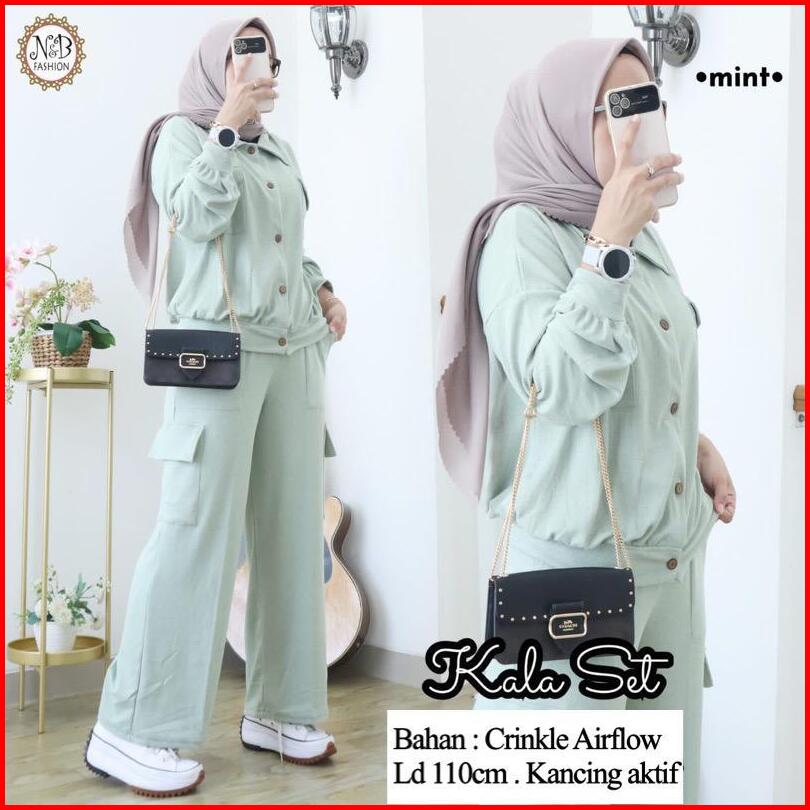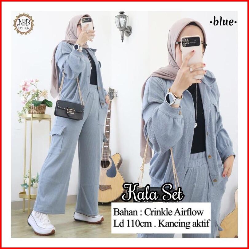 Kala Set Cardigan Celana Cargo Jumbo Ld 110-120 Crinkle Airflow Setelan Kala One Set Polos Cardigan Setcel Cardgigan Car