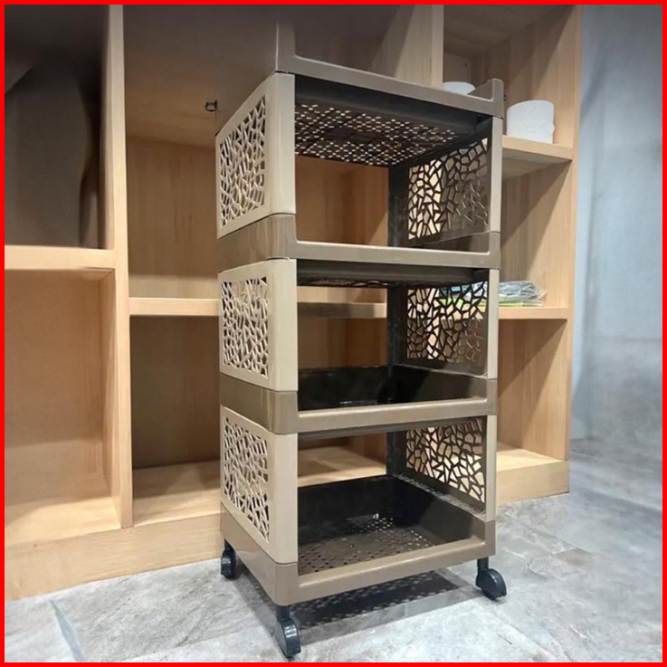 Rak Yoyo 4 Susun Rak Dapur Serbaguna 4 Tingkat Roda Lemari Plastik Bahan Tebal Lemari Pakaian Baju