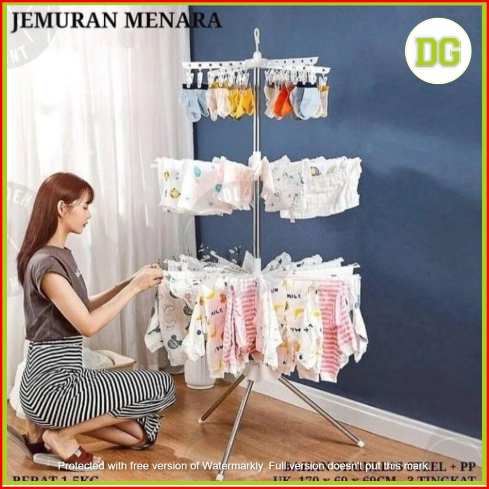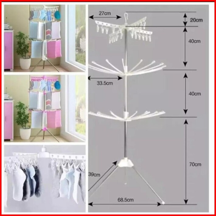 Jemuran Menara 3 Tingkat Jemuran Baju 3 Lipat 16 Jari Jari 24 Jepitan Baju