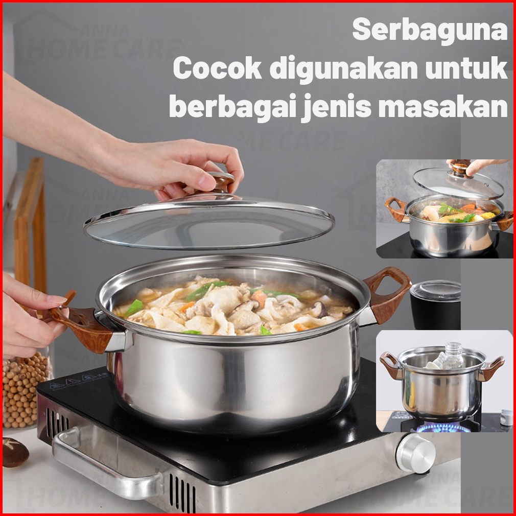 Anna Panci Sop Stainless Panci Susu - Milk Pan Soup Pot Panci Sayur Panci Kuping Panci Stainless Tutup Kaca Panci Gagapa
