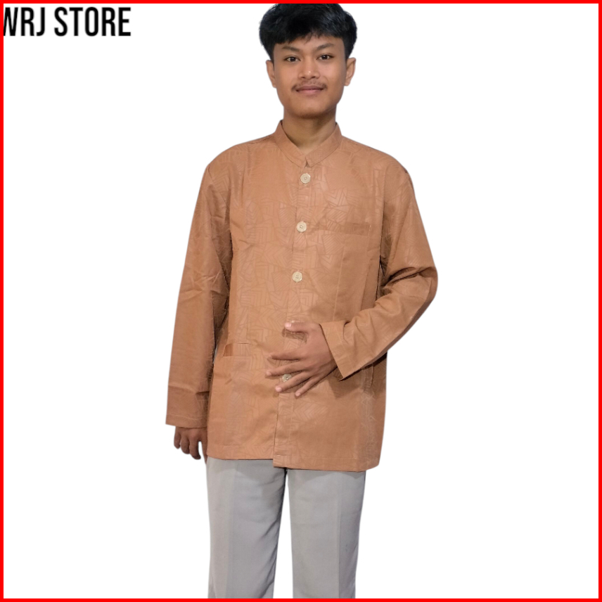 Baju Koko Pria Dewasa Motif Embos Lengan Panjang Terbaru 2025