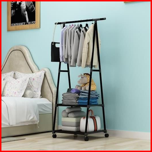 Triangle Stand Hanger Pipa Logam Rak Gantungan Baju Pakaian Jemuran Dengan 4 Roda