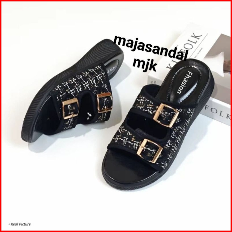 Sandal Wanita Platform Slip On Viral Hak 3 Cm Sandal Wedges Kekinian Elegan Sandal Wanita Slop Pesta Terbaru