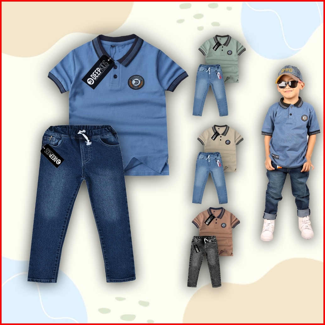 Setelan Anak Laki Laki Distro Premium Kaos Kerah Polo Celana Jeans Panjang Usia 1 2 3 4 5 6 7 8 9 10 11 12 Tahun Set Kao