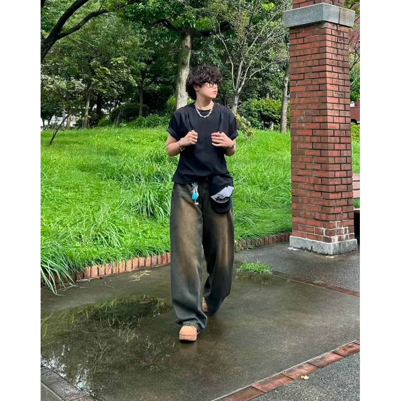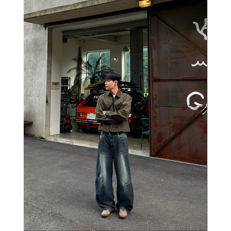 Celana Jeans Baggy Cargo Kulot Pria Jumbo Black Wisker Loose Fit Reguler Standard Denim Washed Skena Celana Baggy Jeans