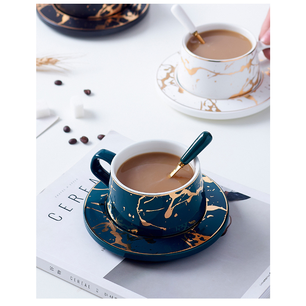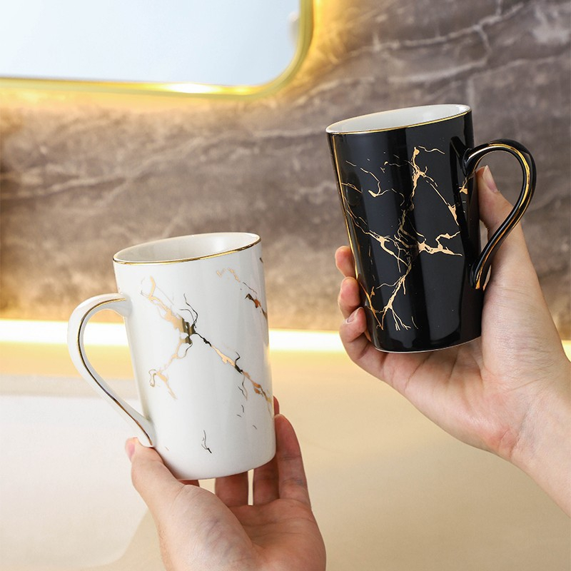 Bakindo Nordic Coffee Glass Mug Gelas Kopi Teh Keramik Marble Pattern Marble Mug Gift Box Gelas Marble Tutup Hampers Glass Marble