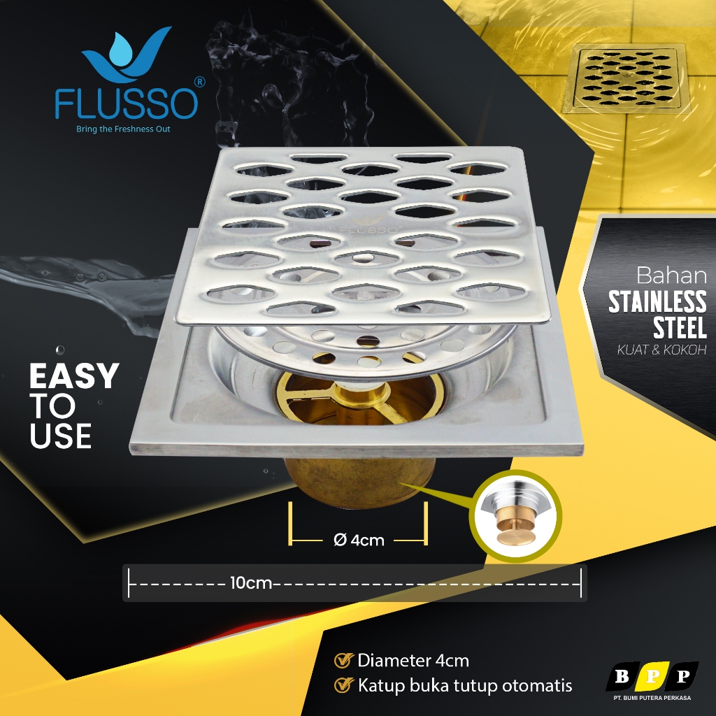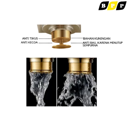 FLUSSO Floor Drain Penutup Saluran Air Kamar Mandi 4 inch Katub Otomatis Kuningan Anti Bau AXC1 619