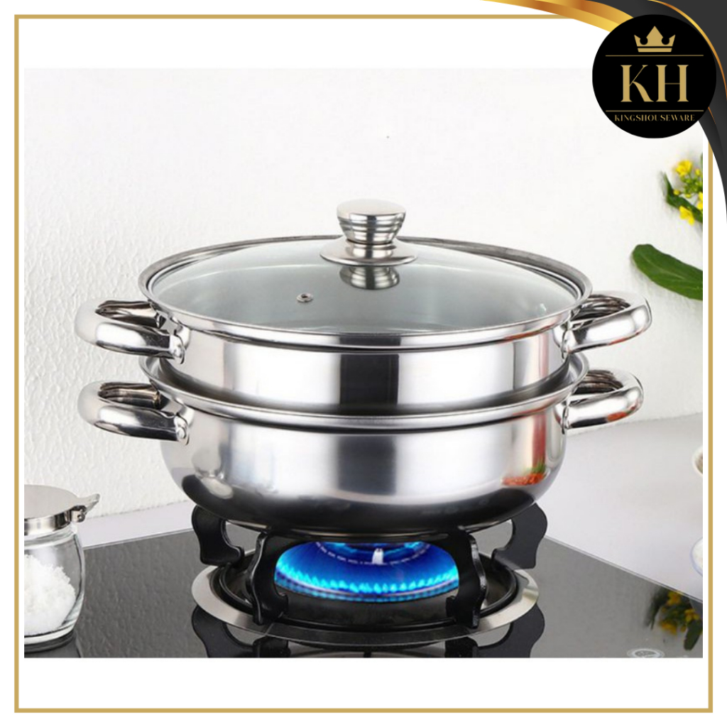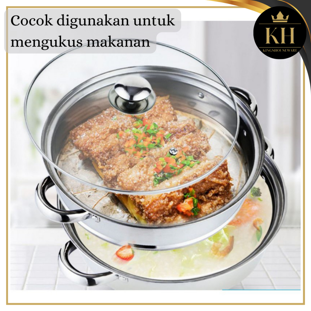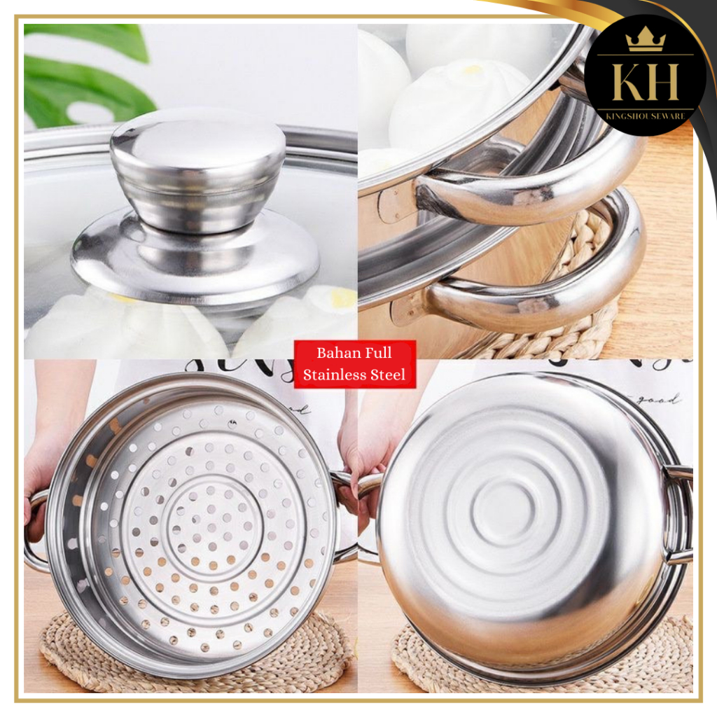 KH - STEAMER STEINLESS PANCI KUKUS 2 TINGKAT - ALAT KUKUS 4 KUPING DENGAN TUTUP KACA - KUKUS SIOMAY BERKUALITAS