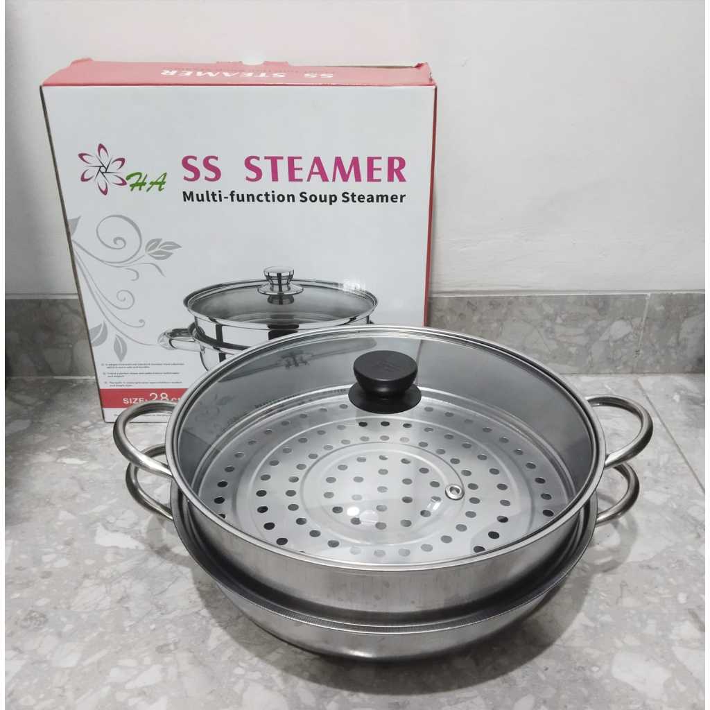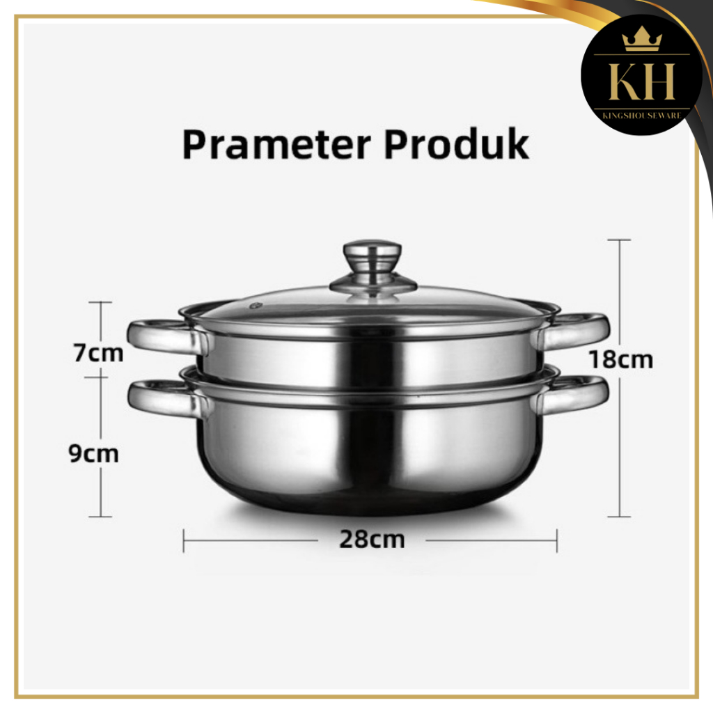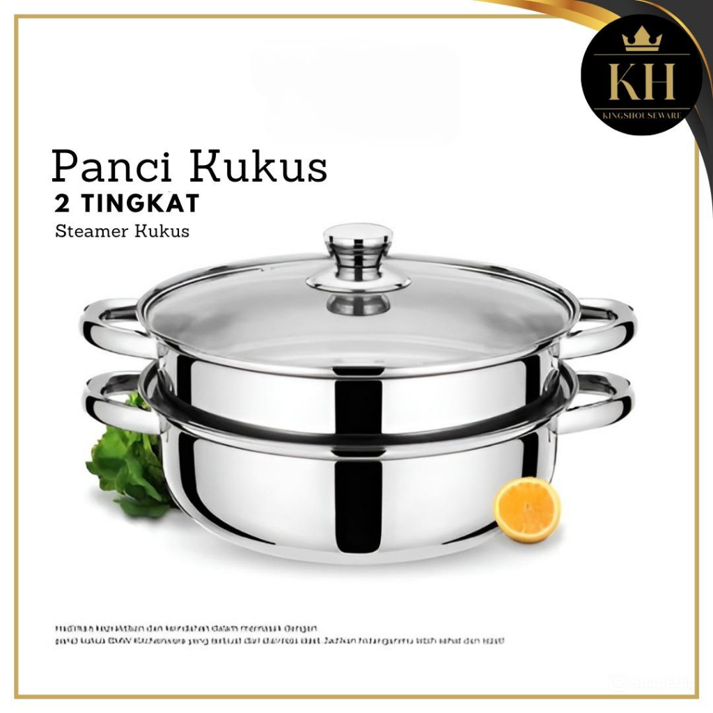 KH - STEAMER STEINLESS PANCI KUKUS 2 TINGKAT - ALAT KUKUS 4 KUPING DENGAN TUTUP KACA - KUKUS SIOMAY BERKUALITAS