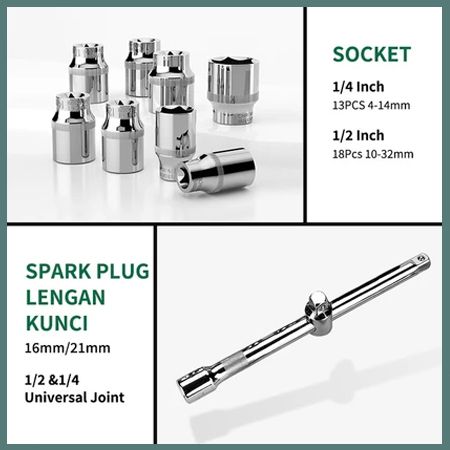 REAIM Tool Kit Set 82pcs Kunci Shock Set Termasuk Kunci Ring Pas Alat Set Perbaikan Mobil pas Kunci Shock