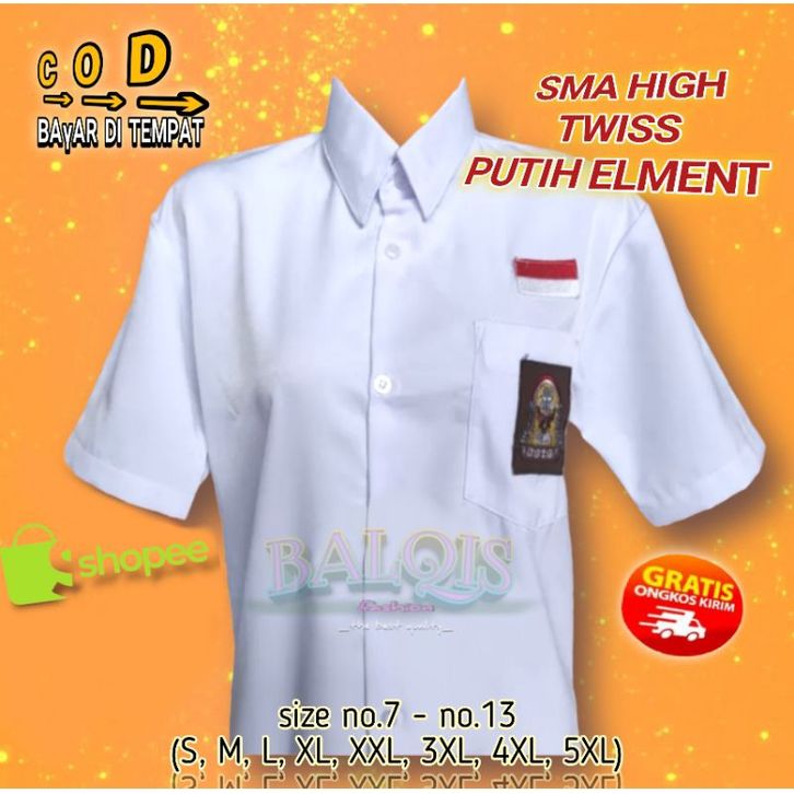 Baju SMA Twis Putih Elment Licin Seragam Sekolah Lengan Pendek