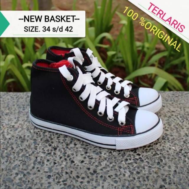 Sepatu Sekolah New Basket HC Hitam putih Merah Size 34 s/d 42 Orinal Murah Berkualitas