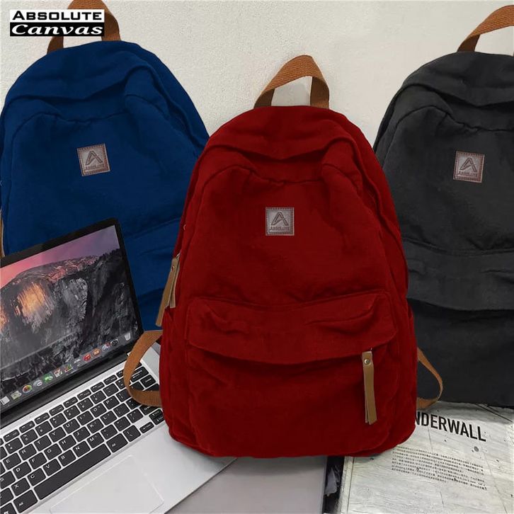 ABSOLUTE_Tas Ransel Hitam Kanvas Uni Lap to 14 Inch Pria Wanita Sekolah Kuliah Kerja