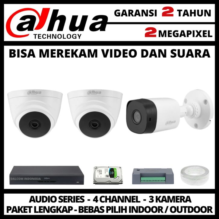 Paket CCTV Dahua 2MP 4 Channel 3 Kamera Audio Series