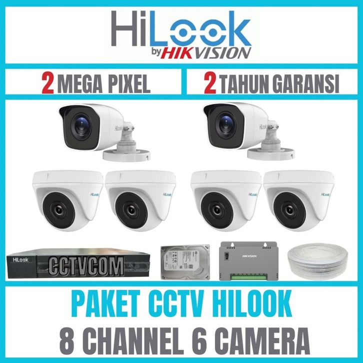 Paket Cctv Hilook 2 Mega Pixel 8 Channel 6 camera Turbo HD