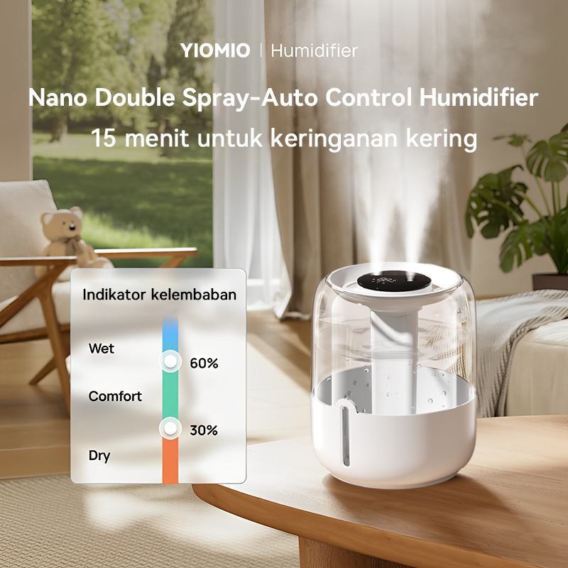 YIOMIO Humidifier 6.8L Ultrasonic - Air Purifier, Diffuser Aromaterapi, LED Night Light, Type-C, Dual Hole, 16dB Senyap, untuk Kamar Tidur Health Humidifier
