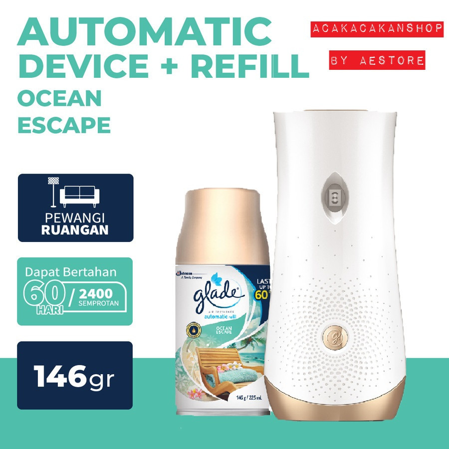 Glade Matic Device + Refill Ocean Escape 146gr / 225mL Dengan Konsentrat Fragrance