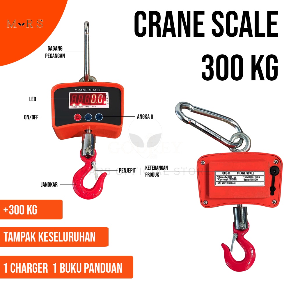 Timbangan Gantung Digital Elektronik OCS 300 KG Besi Digital LED Orange LCD Electronic Hanging Crane Scale 300Kg GARANSI