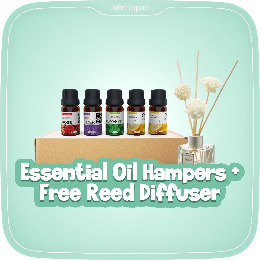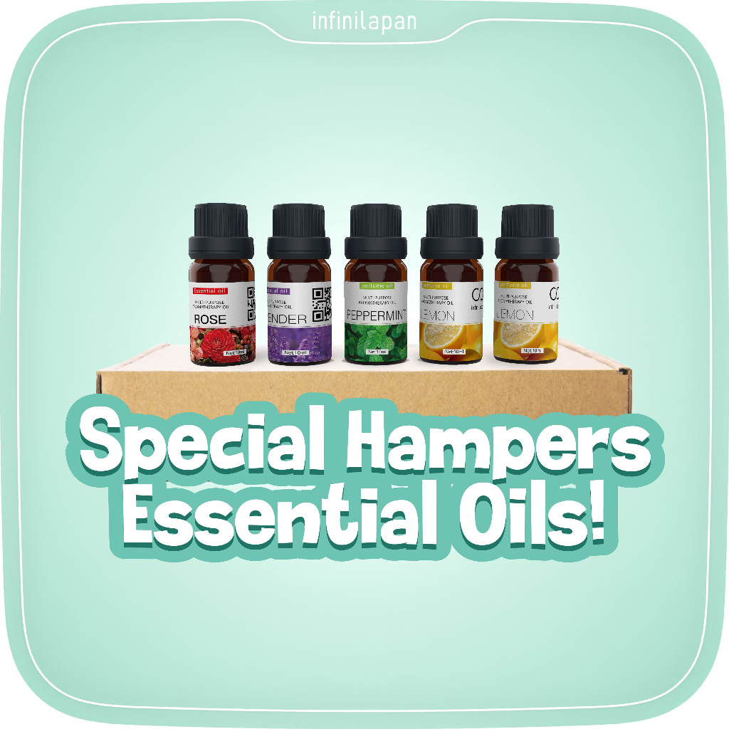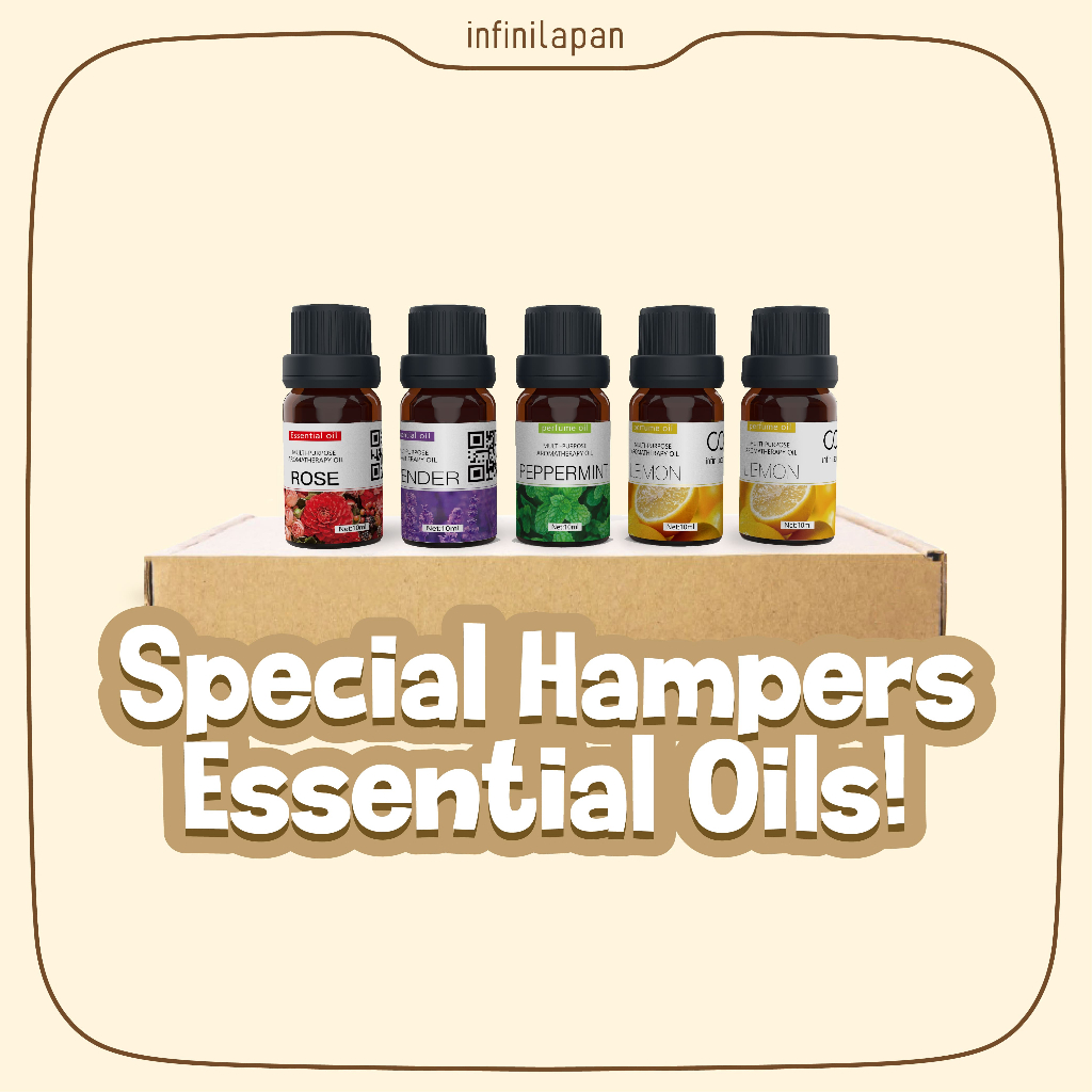 INFINILAPAN Essential Oil Box 5 Oil dalam 1 Box : Pure Aromatherapy Diffuser, Pengharum Ruangan, Burner Oil & Humidifying Essential Oils