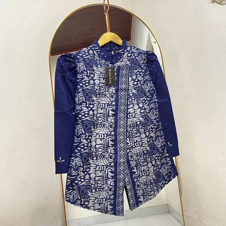 Batik Atasan Wanita Modern Baju Batik Lengan Panjang Puffy Janggan