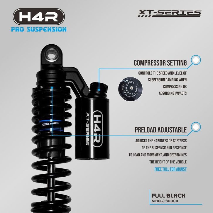 [Star] H4R SHOCK TABUNG ATAS XT SERIES 330MM 340MM VARIO 125/150/160 STYLO BEAT GENIO XRIDE FILANO SHOCKBREAKER EXTREME