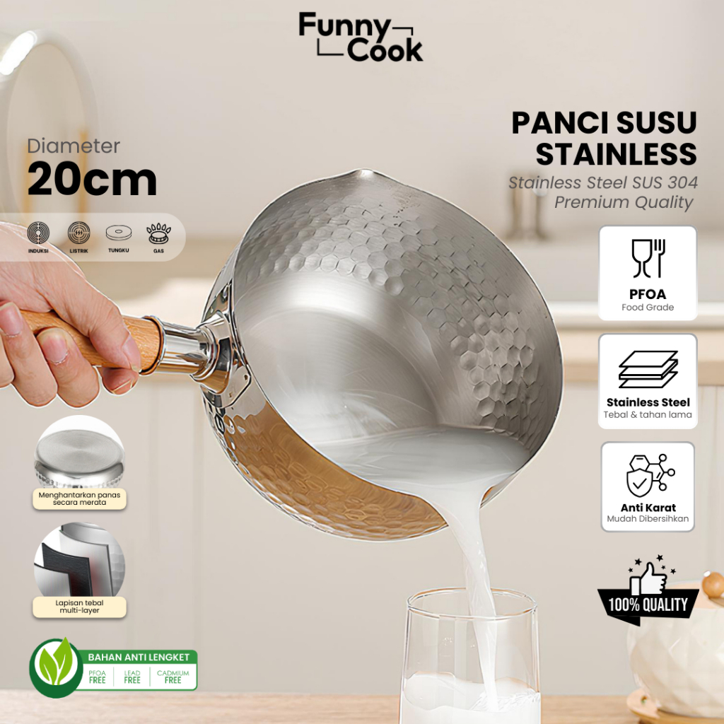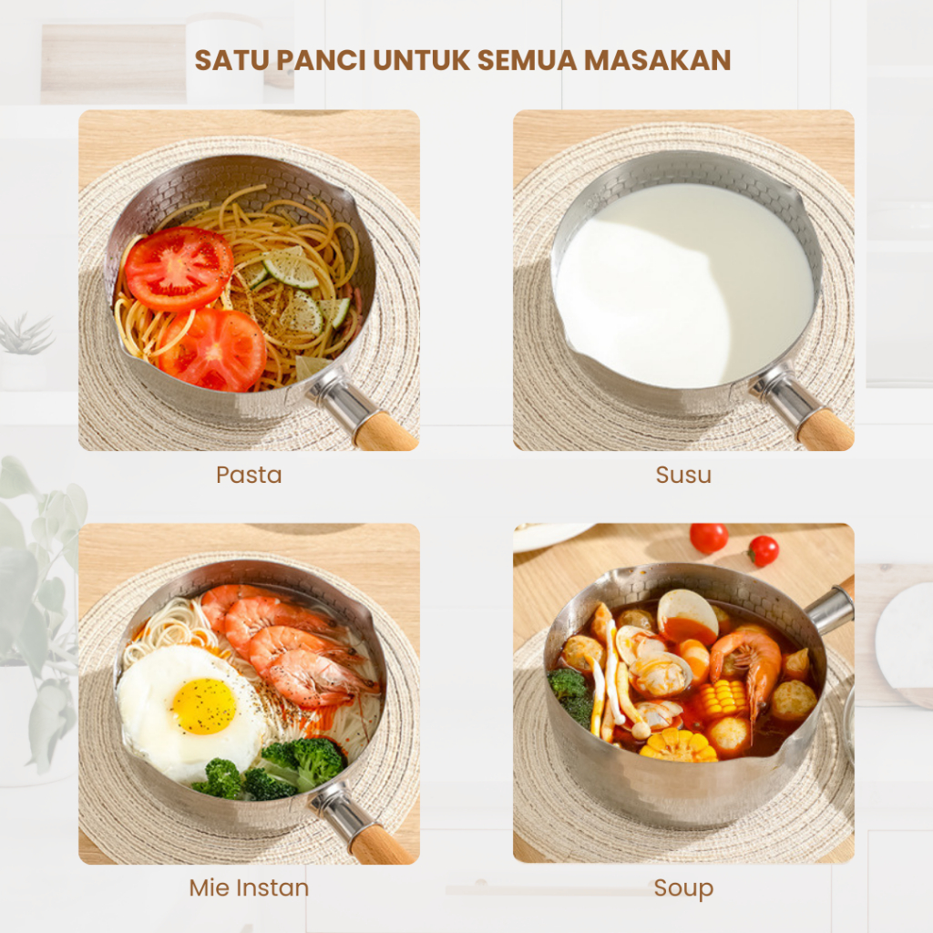 PANCI SUSU PREMIUM 20CM GAGANG KAYU TEBAL PANCI INDOMIE PANCI SERBAGUNA ANTI KARAT