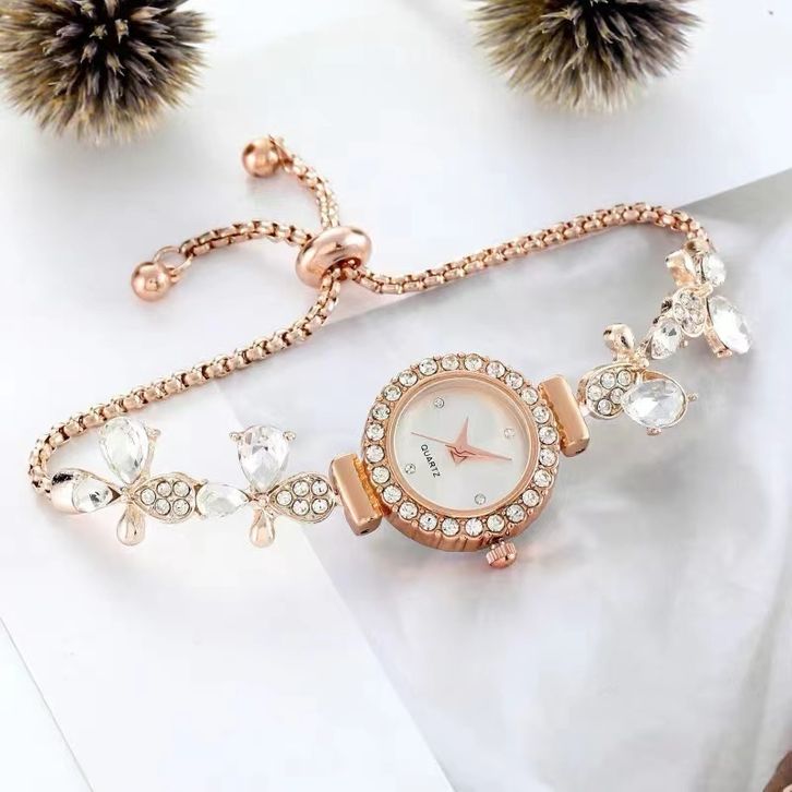 Jam Tangan Wanita Rantai Analog Quartz-Gelang Tangan Jam Serut