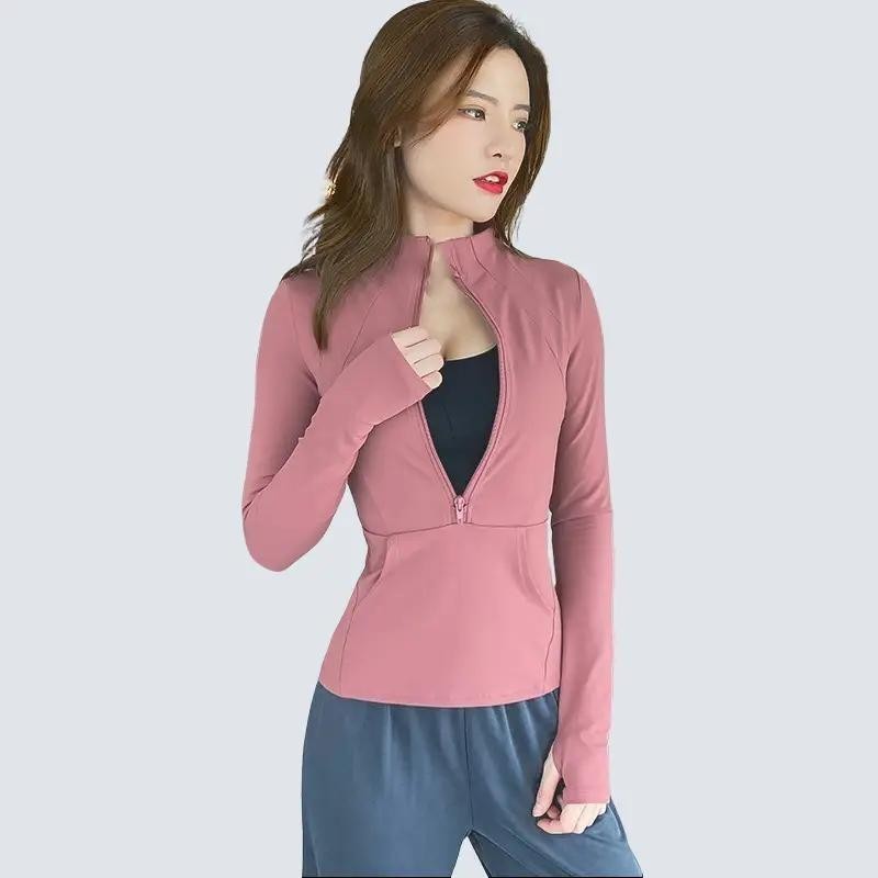 Okah Jaket Uv Protection Wanita Baju Berkuda Yoga Setengah Ritsleting Untuk Wanita Lari Ramping, Pakaian Kebugaran Cepat