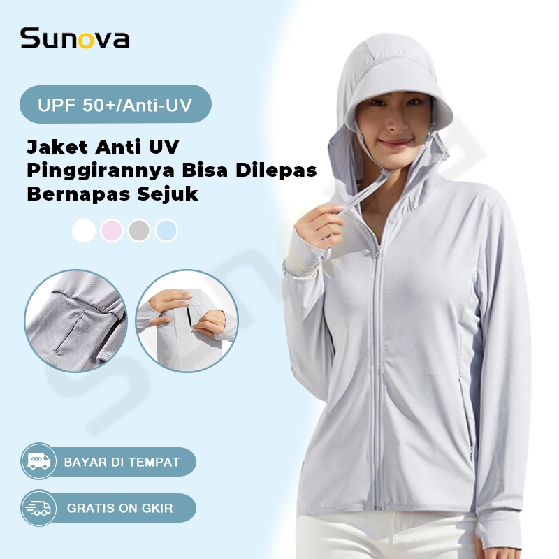 Sunova Jaket Anti UV Olahraga Wanita Premium UPF 50+ Atasan Jaket sepeda motor wanita