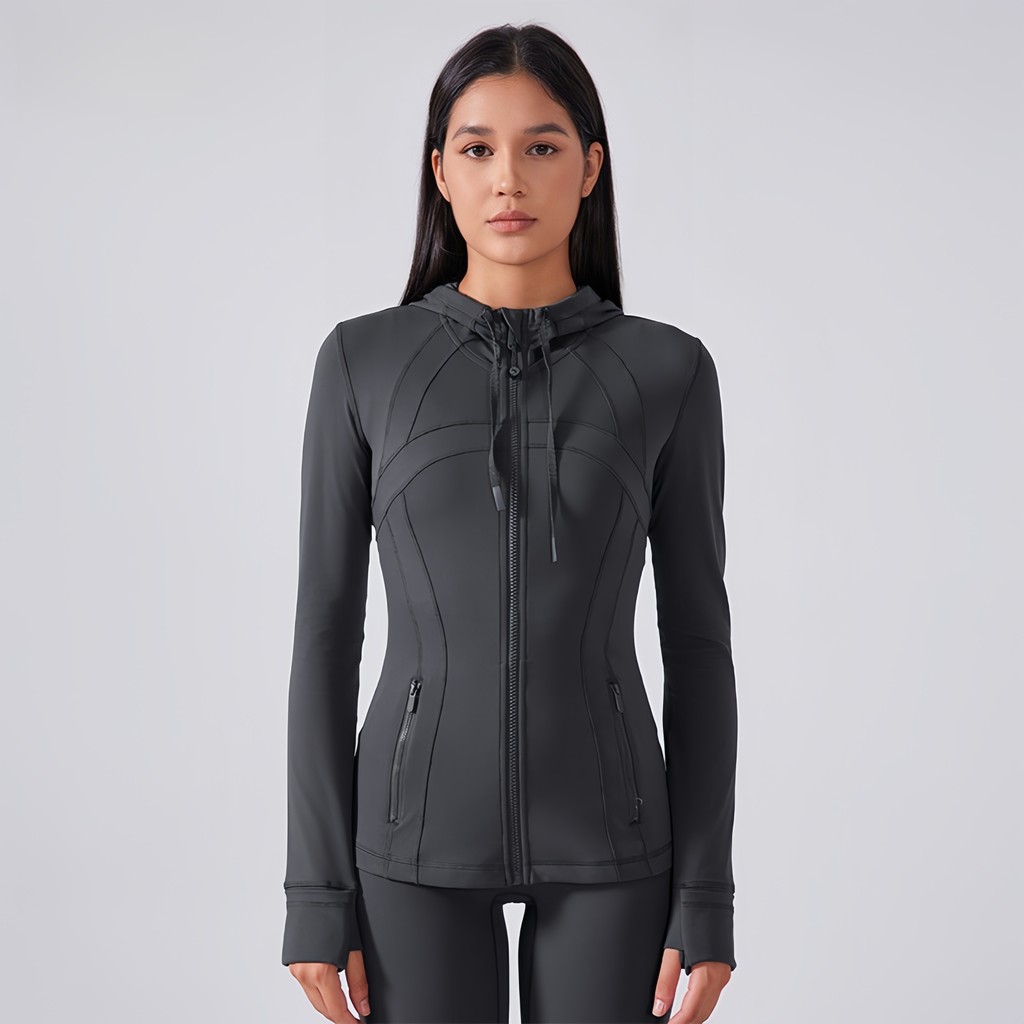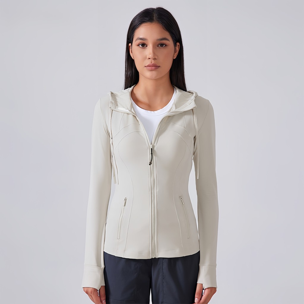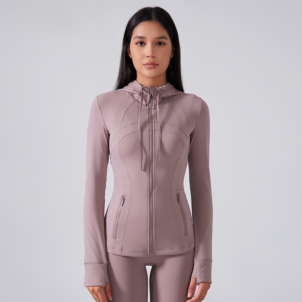 FreeFit Flow Jaket Hooded Olahraga Wanita Outdoor Anti UV Gym Pilates Yoga Jaket Gunung Lari Jogging
